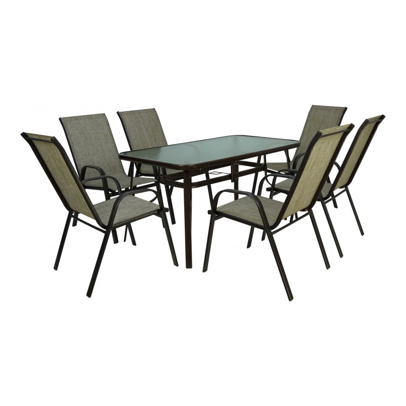 ΣΕΤ ΤΡΑΠΕΖΑΡΙΑΣ 7 ΤΜΧ ΜΕΤΑΛΛΙΚΗ ΜΕ 6 ΚΑΡΕΚΛΕΣ & ΤΡΑΠΕΖΙ 150x90 ΚΑΦΕ