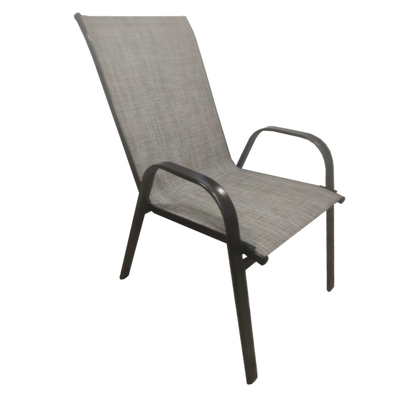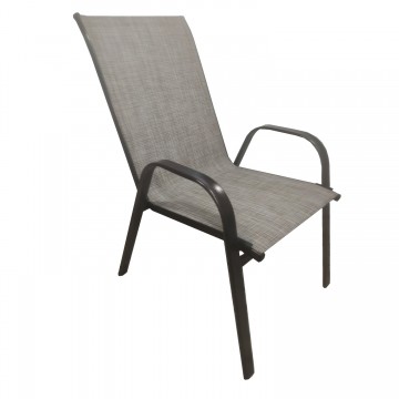 Έξη πολυθρόνες εξωτερικού χώρου από μεταλλικό σκελετό σε καφέ χρώμα με textilene 2x1 μεγάλης αντοχής σε ήλιο και βροχή.