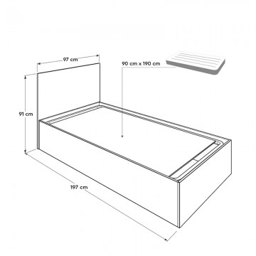 Κρεβάτι λευκό μονό με αποθηκευτικό χώρο clever KRB-090-BB-2 90x190x97εκεκ.