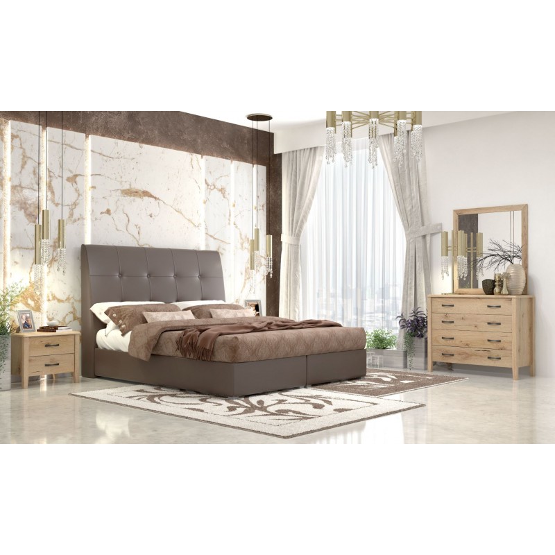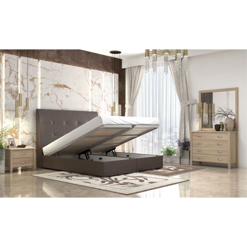 Κρεβάτι υπέρδιπλο,ντυμένο με δερματίνη σε απόχρωση καφέ, με αποθηκευτικό χώρο