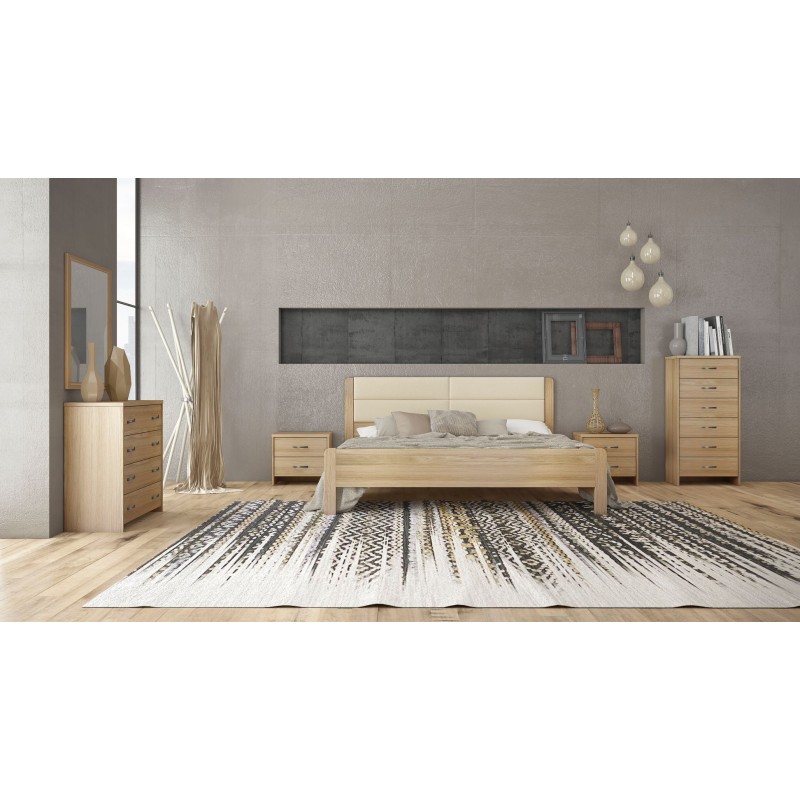 Με ψηλό και επιβλητικό προσκέφαλο από ξύλο οξιάς και λευκό-εκρού τεχνόδερμα που προσδίδουν ζεστασιά και θαλπωρή στο χώρο σας.