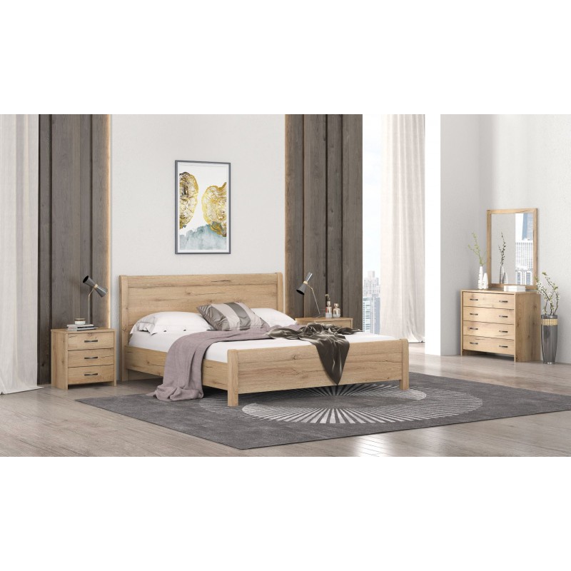 Κρεβάτι διπλό από υψηλής ποιότητας μελαμίνη και ξύλο οξιάς στα πόδια σε απόχρωση μελί.