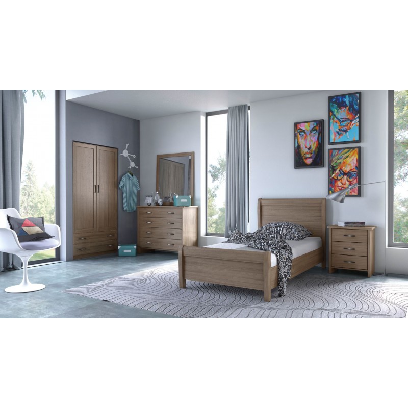 Κρεβάτι μονό από υψηλής ποιότητας μελαμίνη και ξύλο οξιάς στα πόδια σε απόχρωση μόκα.