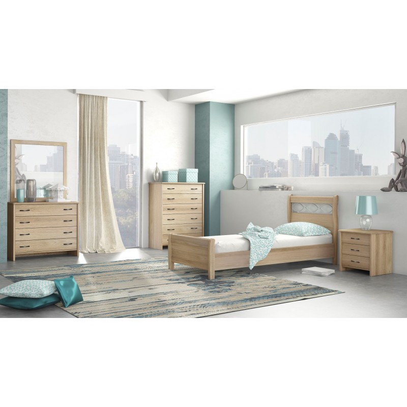 Κρεβάτι μονό από υψηλής ποιότητας μελαμίνη και ξύλο οξιάς στα πόδια σε απόχρωση λάττε.