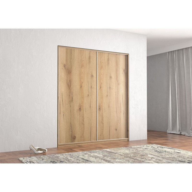Ευρύχωρη και στιβαρή ντουλάπα από υψηλής ποιότητας μελαμίνη, συρόμενη με μηχανισμό σε απόχρωση μελί.