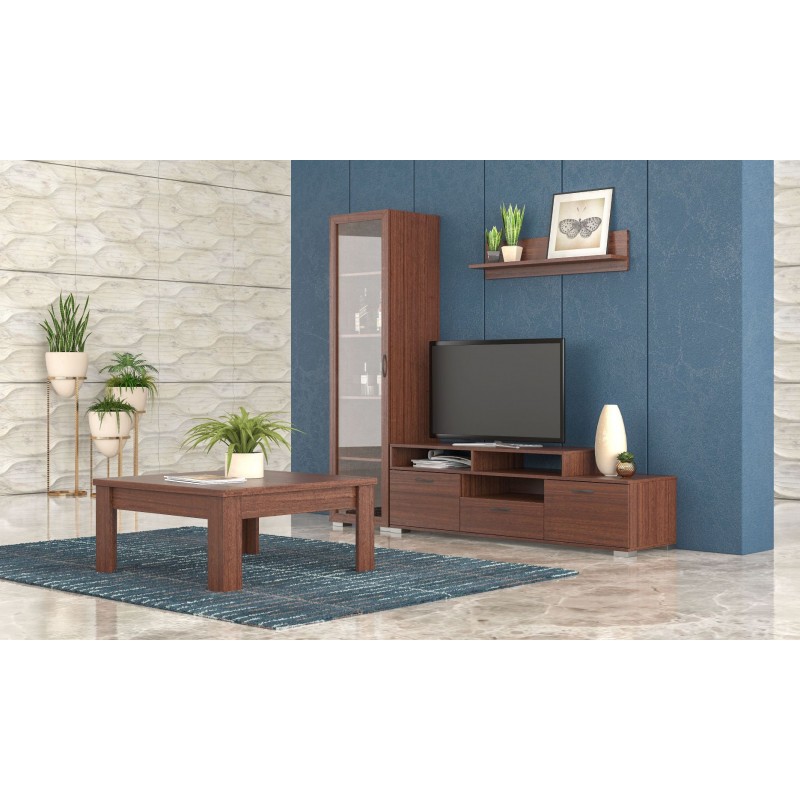 ΣΥΝΘΕΤΟ 4τμχ ΧΡΩΜΑΤΟΣ ΚΑΡΥΔΙ ΤΟ ΕΠΙΠΛΟ TV 130*45*48ΕΚ., ΒΙΤΡΙΝΑ 45*45*180ΕΚ., 1 ΡΑΦΙ ΤΟΙΧΟΥ 90*12*20εκ. Νο29 ΤΗΣ Savvidis Furniture