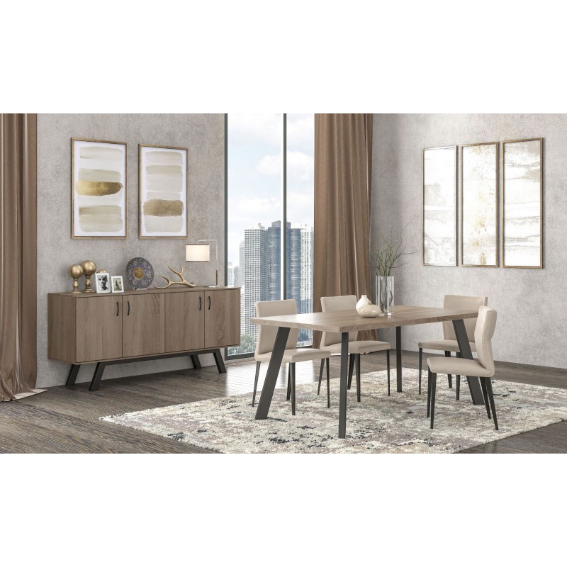 Μπουφές από υψηλής ποιότητας μελαμίνη σε μόκα απόχρωση με μεταλλική βάση και πόδια σε μαύρο χρώμα και μαύρα χερούλια.Διαστάσεις: