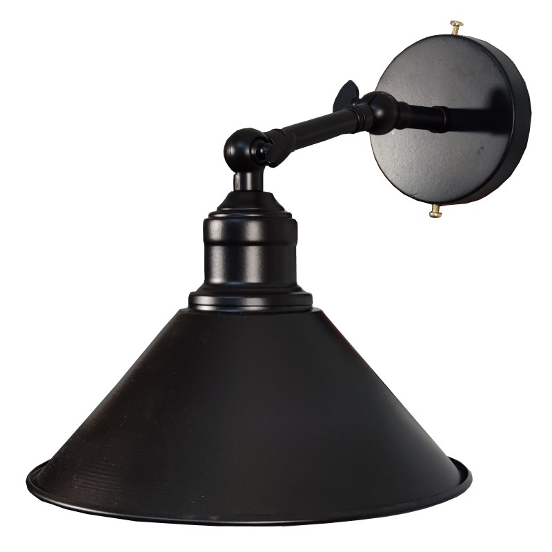 Φωτιστικό τοίχου μεταλλική μαύρη απλίκα Ε27 διαστάσεων Φ22*Υ20εκ. με ρεγουλατόρο (σπάσιμο) σε 2 σημεία.