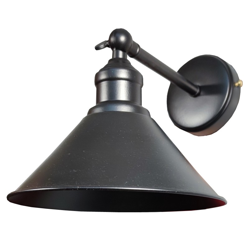Φωτιστικό τοίχου μεταλλική μαύρη απλίκα Ε27 διαστάσεων Φ22*Υ20εκ. με ρεγουλατόρο (σπάσιμο) σε 1 σημείο.