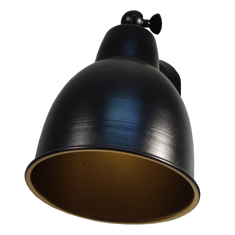 Φωτιστικό τοίχου μεταλλική μαύρη απλίκα Ε27 με σπάσιμο σε 2 σημεία και χρυσό ματ χρώμα εσωτερικά διαστάσεων Φ15*Β35*Υ20εκ.