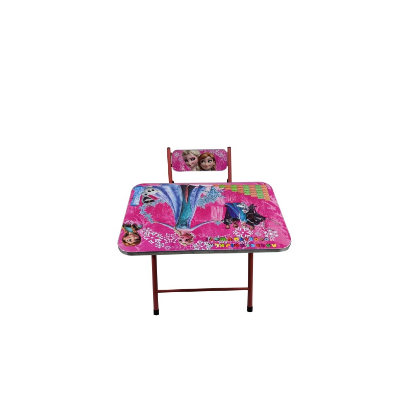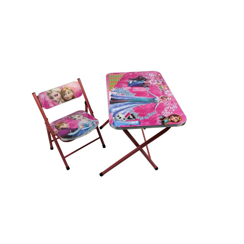 Μεταλλικό πτυσσόμενο παιδικό γραφείο επενδυμένο με χαρούμενες παιδικές παραστάσεις εμπνευσμένες ιδανικό για τις πρώτες σχολικές τάξεις, το διάβασμα,την ζωγραφική, τις χειροτεχνίες, το φαγητό των μικρών μας φίλων,που πάντα θέλουν να έχουν τον δικό τους χώρο και το τραπεζάκι αυτό με το καρεκλάκι είναι η καλύτερη επιλογή!Περιλαμβάνει τραπέζι και ένα καρεκλάκι, γερή κατασκευή από ανθεκτικό ξύλο και μέταλλο.