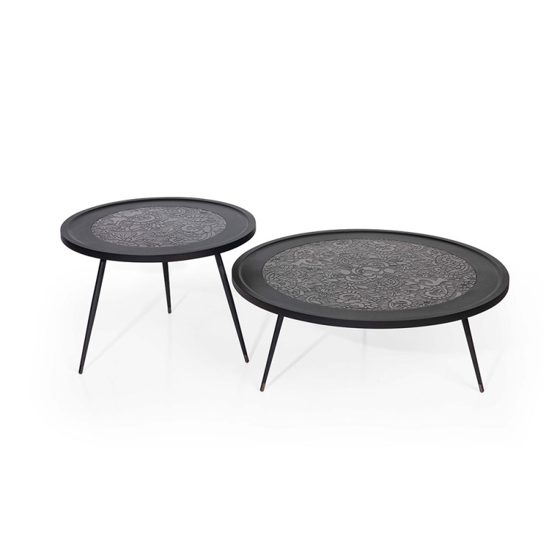 Τραπέζι σαλονιού σετ 2τεμ Omega ξύλο MDF μαύρη λάκα με γκρι ανάγλυφο σχέδιο βαφή με μεταλλικά πόδια 90x90x41εκ