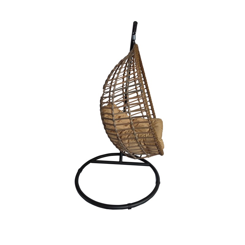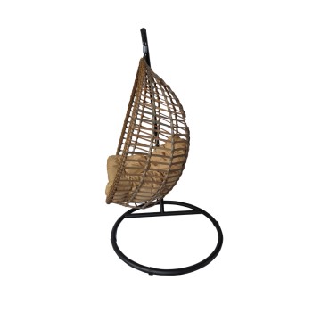 Κρεμαστή πολυθρόνα που μπορεί να πλαισιώσει τον εσωτερικό και τον εξωτερικό σας χώρο. Διαθέτει στιβαρή μεταλλική βάση σε χρώμα μαύρο, εξαιρετικής ποιότητας που παρέχει μεγάλη σταθερότητα. Η "φωλιά" της είναι επενδυμένη από wicker σε μπεζ απόχρωση με όμορφο και κομψό σχεδιασμό. Προσφέρει και αφράτα μπεζ υφασμάτινα μαξιλάρια. Μία ιδανική λύση για το σπίτι ή την επιχείρησή σας που θα ανενεώσει το υπάρχον design και θα δημιουργήσει μία ονειρικά εξωτική ατμόσφαιρα.