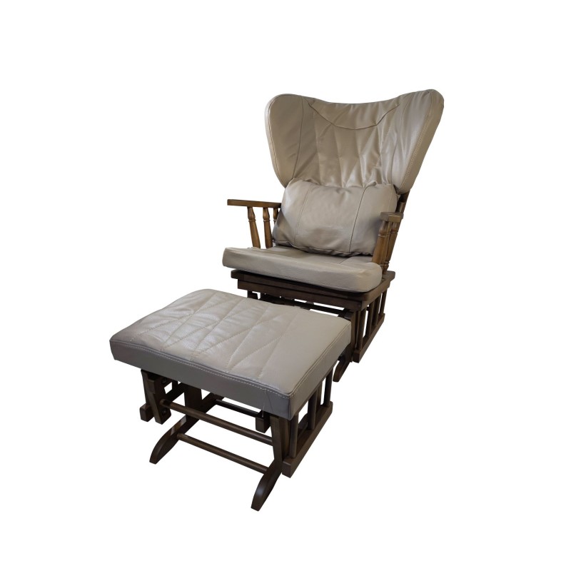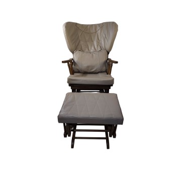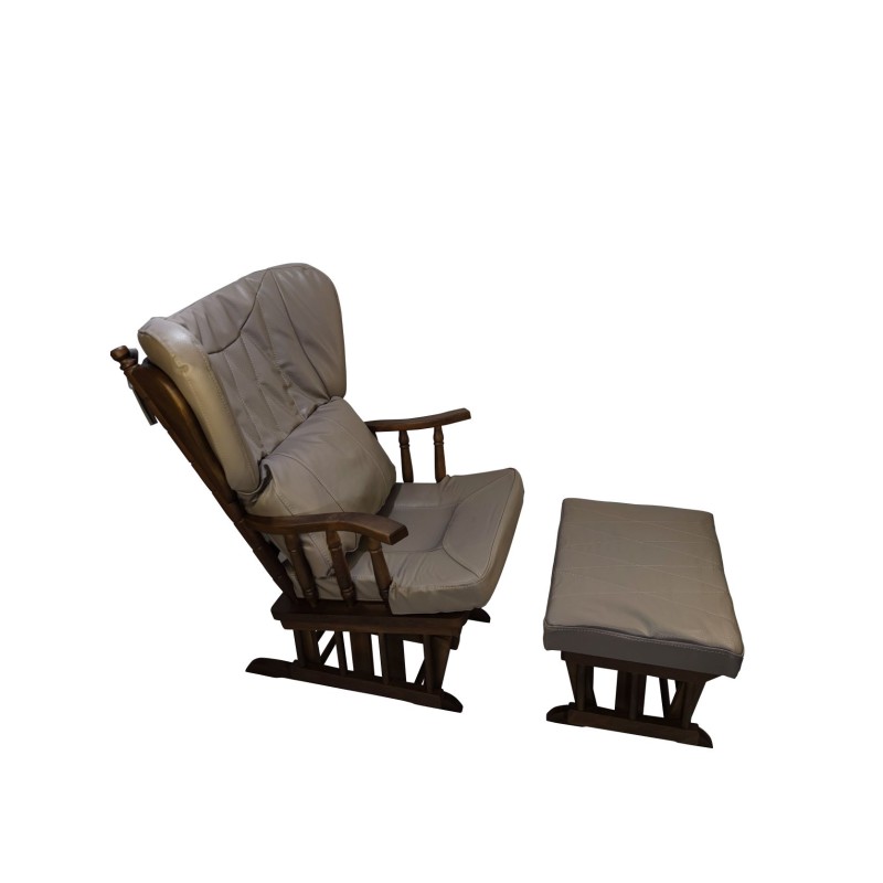 Πολυθρόνα κουνιστή ξύλινη Αμαλία με υποπόδιο κουνιστό χρώματος καρυδιά με μαξιλάρι από καπουτσίνο τεχνοδερμα