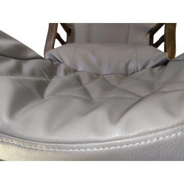 Ο τρόπος με τον οποίο είναι φτιαγμένη καθώς τα τα υλικά της την κάνουν ιδιαίτερη και μοναδική γιατί όταν κουνιέται δεν ακουμπάει στο δάπεδο ώστε να έχει τριβές και να ακούγετε, είναι φτιαγμένη από ξύλο οξιάς και την καθιστά ως καλαίσθητο έπιπλο μέσα στον χώρο σας και το τεχνοδερμα που είναι φτιαγμένο το μαξιλάρι είναι η καλύτερη ποιότητα
