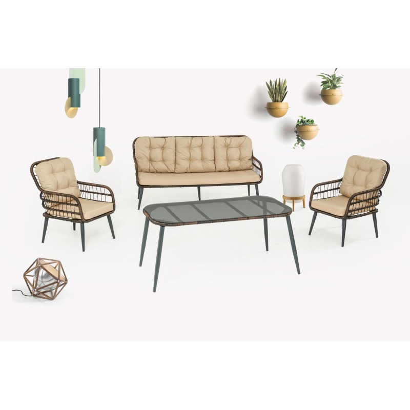 ΣΕΤ ΣΑΛΟΝΙΟΥ 4ΤΜΧ ΜΕ ΤΡΙΘΕΣΙΟ ΜΕΤΑΛΛΙΚΟ ΣΚΕΛΕΤΟ ΚΑΙ WICKER ΚΑΦΕ ΜΕ ΤΡΑΠΕΖΙ ΦΑΓΗΤΟΥ
