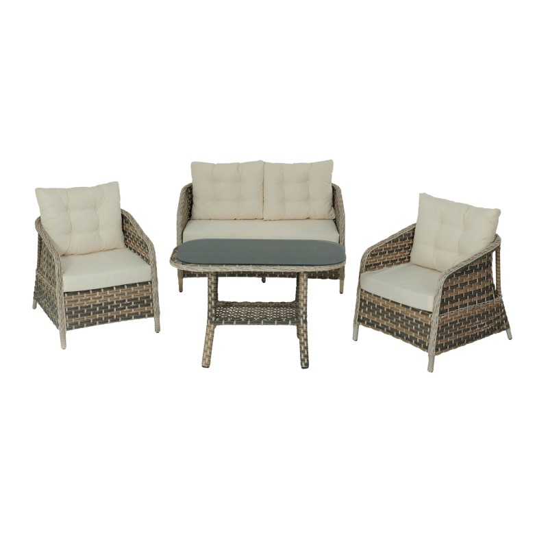 ΣΕΤ ΣΑΛΟΝΙΟΥ 4ΤΜΧ ΜΕ ΔΙΘΕΣΙΟ ΑΛΟΥΜΙΝΙΟΥ ΣΚΕΛΕΤΟ ΚΑΙ WICKER ARENA ΚΑΦΕ ΜΕ ΤΡΑΠΕΖΙ ΦΑΓΗΤΟΥ