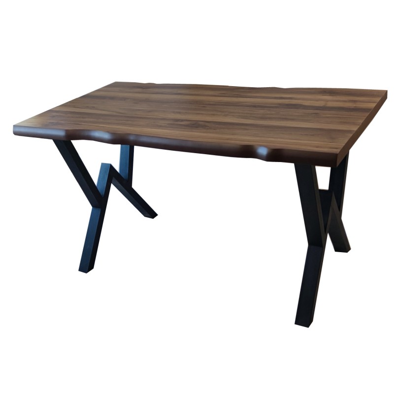 Το τραπέζι είναι κατασκευασμένο από MDF ξύλο καρυδιάς σε φυσική απόχρωση και μέταλλο σε μαύρο χρώμα.