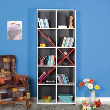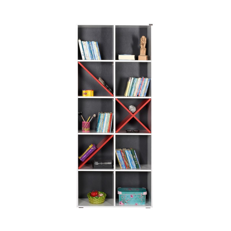 Βιβλιοθήκη Gaming λευκή με διαχωριστικό και δέκα χώρους αποθήκευσης μελαμίνης KTP-910-BK 75x30x188cm