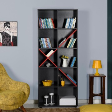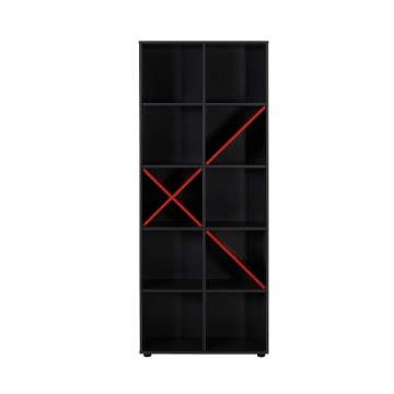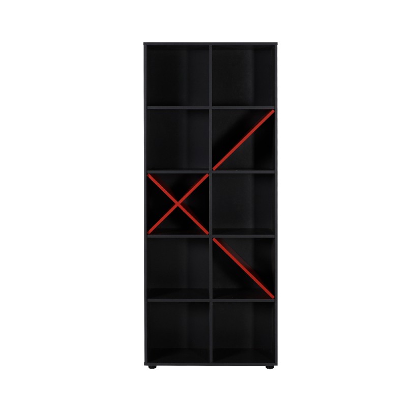 Βιβλιοθήκη Gaming ανθρακι με διαχωριστικό και δέκα χώρους αποθήκευσης μελαμίνης KTP-910-BK 75x30x188cm