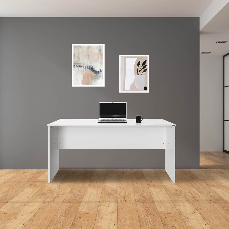 Γραφείο με κομψό και λιτό σχεδιασμό, κατασκευασμένο από ανθεκτική μελαμίνη πάχους 18 χιλιοστών υψηλής ποιότητας, σε λευκή απόχρωση.