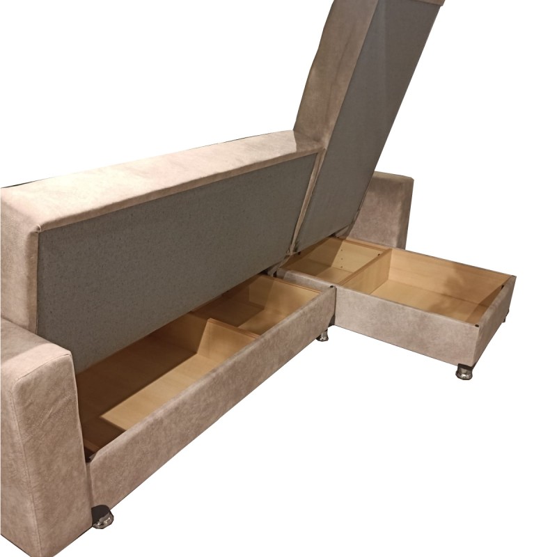 Γωνιακός καναπές κρεβάτι με δυο αποθηκευτικούς χώρους LUNA με αλέκιαστο ύφασμα Χρώμα μπεζ 2,50x1,50x95εκ