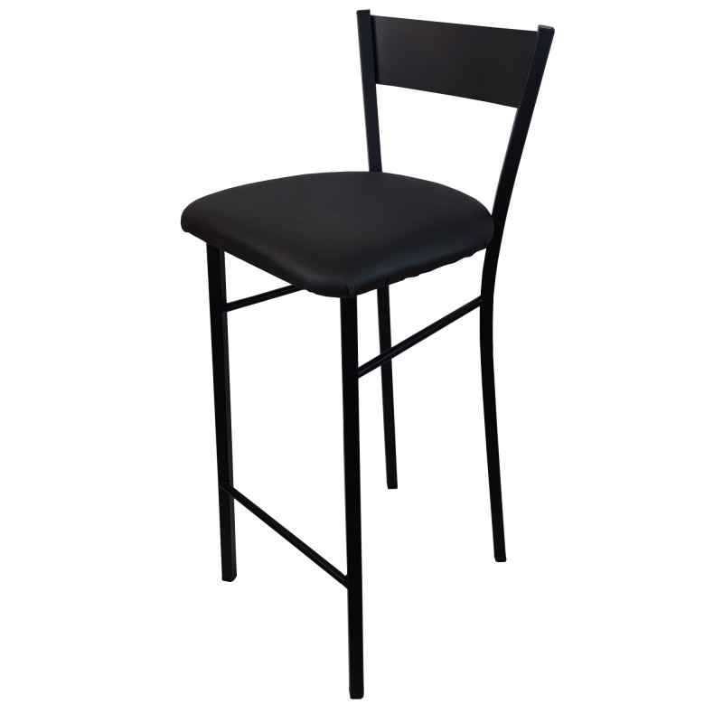 Σκαμπό για μπαρ μαύρο με πλάτη μεταλλικό με μαύρο τεχνόδερμα 75εκ ύψος καθίσματος 40x40x108εκ