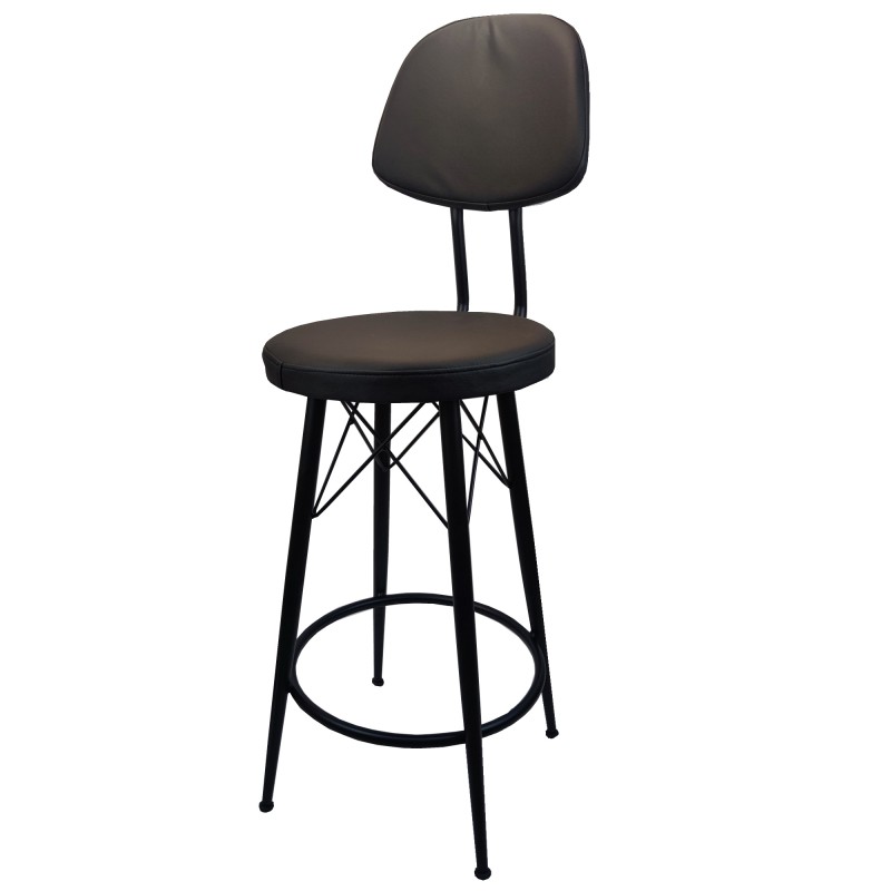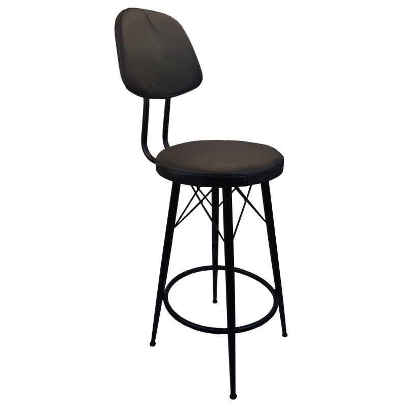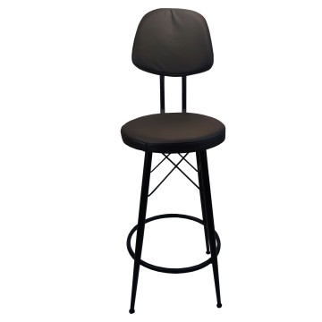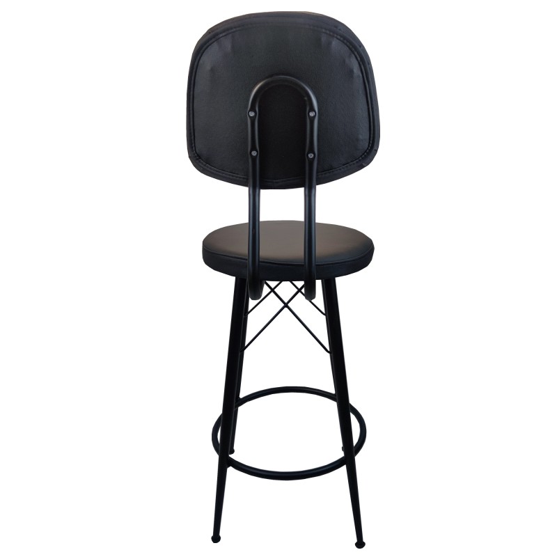 Σκαμπό για μπαρ μεσαίου ύψους μαύρο με πλάτη μεταλλικό και μαύρο τεχνόδερμα 34x38x95εκ