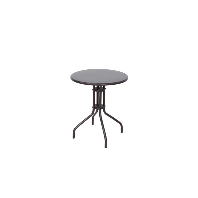 Τραπέζι εξωτερικού χώρου μεταλλικό σε χρώμα καφέ σφυρήλατο με τζάμι ασφάλειας με τρύπα για ομπρέλα 180x90x72εκ