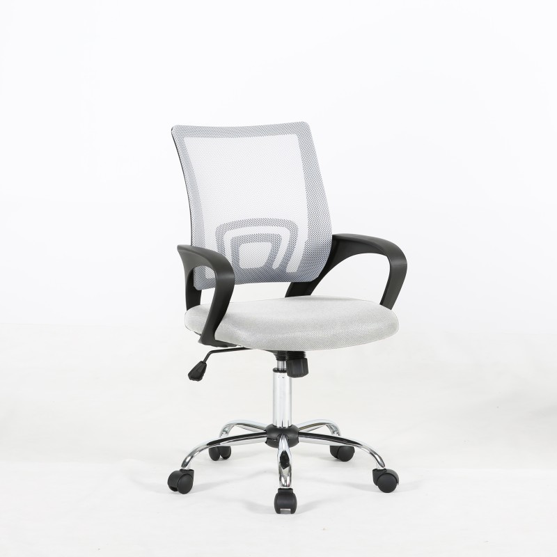Καρεκλά γραφείου γκρι με τροχήλατη μεταλλική βάση ανατομική πλάτη με μηχανισμό relax και διάτρητο ύφασμα 55x55x102εκ
