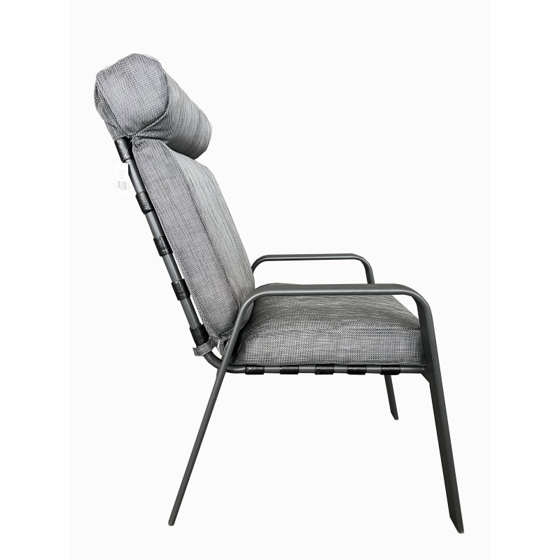 Πολυθρόνα κήπου κατασκευασμένη από σταθερό μεταλλικό σκελετό σε γκρι χρώμα και ύφασμα textilene εξαιρετικής ποιότητας και αντοχής στη φθορά και στο χρόνο σε ανθρακί χρώμα. Ιδανική και πρακτική επιλογή που θα ανανεώσει τη διακόσμηση του εξωτερικού σας χώρου και θα προσφέρει άνεση και χαλάρωση.