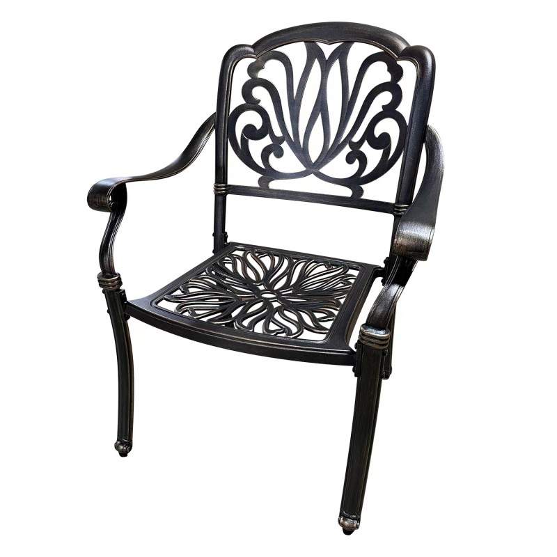 Σετ τραπεζαρίας εξωτερικού χώρου κατασκευασμένη από αλουμινίο σε χρώμα μπρονζε υψηλής ποιότητας και ανθεκτικότητας στον χρόνο. Μία κομψή επιλογή τόσο για τον προσωπικό όσο και για τον επαγγελματικό σας χώρο καθώς μπορεί να συνδυαστεί με μεγάλη ποικιλία χρωμάτων και επίπλων. Ιδανική επιλογή για να κοσμήσει το μπαλκόνι ή τον κήπο σας και μπορεί να σας χαρίσει στιγμές αναπαυτικότητας και χαλάρωσης. Η τραπεζαρία μπορεί να είναι το σημείο όπου θα συναντάτε την οικογένεια και τους φίλους σας. Αποτελείται από έξι πολυθρόνες και ένα τραπέζι.