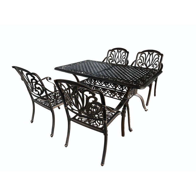 Σετ τραπεζαρία 5 τεμ φερ φοζερ από μασίφ αλουμίνιο σε χρώμα μπρονζε XG18T11 150x90x72