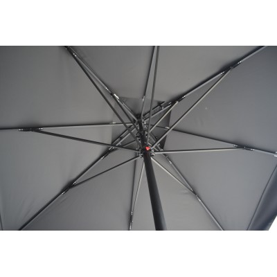 Ομπρέλα στρογγυλή κατασκευασμένη από ενισχυμένο σκελετό αλουμινίου υψηλής ανθεκτικότητας και αντοχής σε ανθρακί χρώμα και αδιάβροχο ύφασμα polyester σε γκρι χρώμα. Διαθέτει κολόνα στήριξης 8 ενισχυμένες ακτίνες στήριξης και αεραγωγό. Κατάλληλη τον κήπο σας ή τον επαγγελματικό σας χώρο.