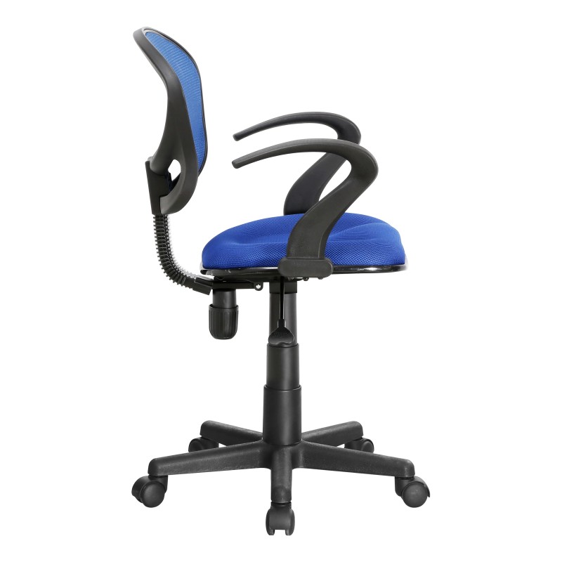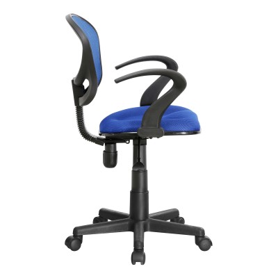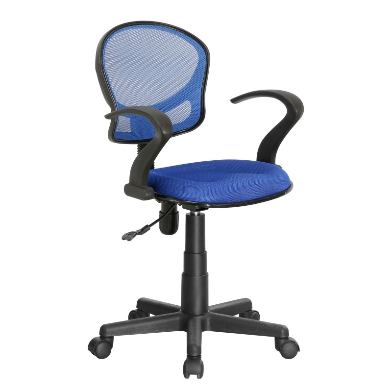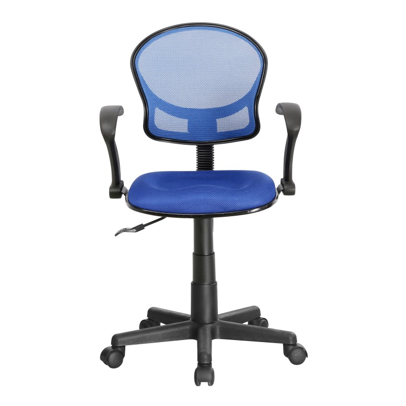 Πολυθρόνα εργασίας γραφείου από ενισχυμένο πολυκαρβονικό σκελετό σε μαύρο χρώμα, επενδυμένη από ύφασμα mesh άριστης ποιότητας και αντοχής σε μπλε χρώμα. Διαθέτει ροδάκια για εύκολη μετακίνηση και μηχανισμό ρύθμισης ύψους του καθίσματος.