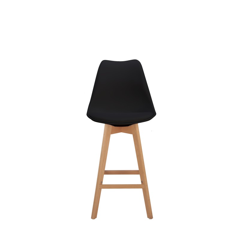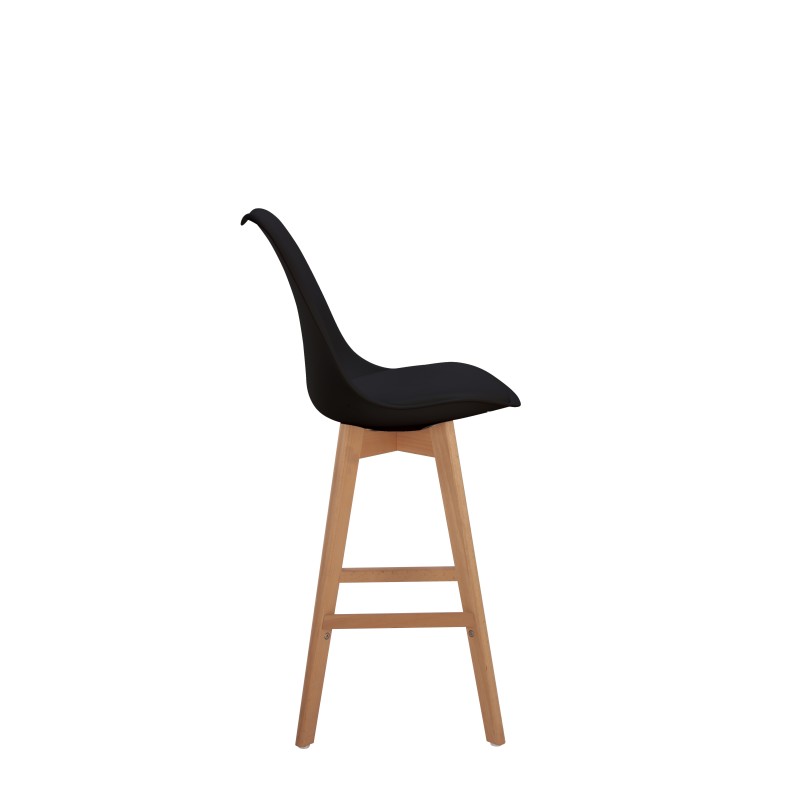 Σκαμπό μπαρ εσωτερικού χώρου. Είναι κατασκευασμένο από ξύλινο σταθερό σκελετό σε φυσικό χρώμα. Το κάθισμά του είναι από πολυπροπυλένιο εξαιρετικής αντοχής σε μαύρο χρώμα. Επιπλέον, διαθέτει αναπαυτικό μαξιλάρι στο κάθισμα, επενδυμένο από τεχνόδερμα σε απόχρωση μαύρο, που θα σας προσφέρει μεγαλύτερη άνεση. Μία μοντέρνα και μίνιμαλ επιλογή που θα ολοκληρώσει το design του χώρου σας.