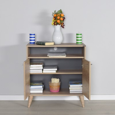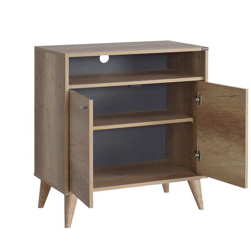 Έπιπλο τηλεόρασης ψηλό μπουφές σταχτί φυσικό με δυο ντουλάπια και ράφια από μοριοσανίδες TVC-722-TT-1 120x3x70εκ