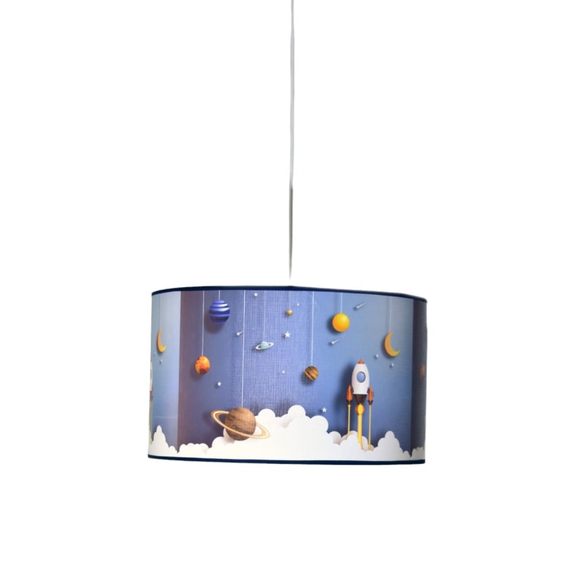 Φωτιστικό παιδικό κατάκτηση του διαστήματος μονοφωτο κρεμαστό Ε27 υφασμάτινο γαλάζιο λευκό με επικάλυψη PVC Φ40X90εκ