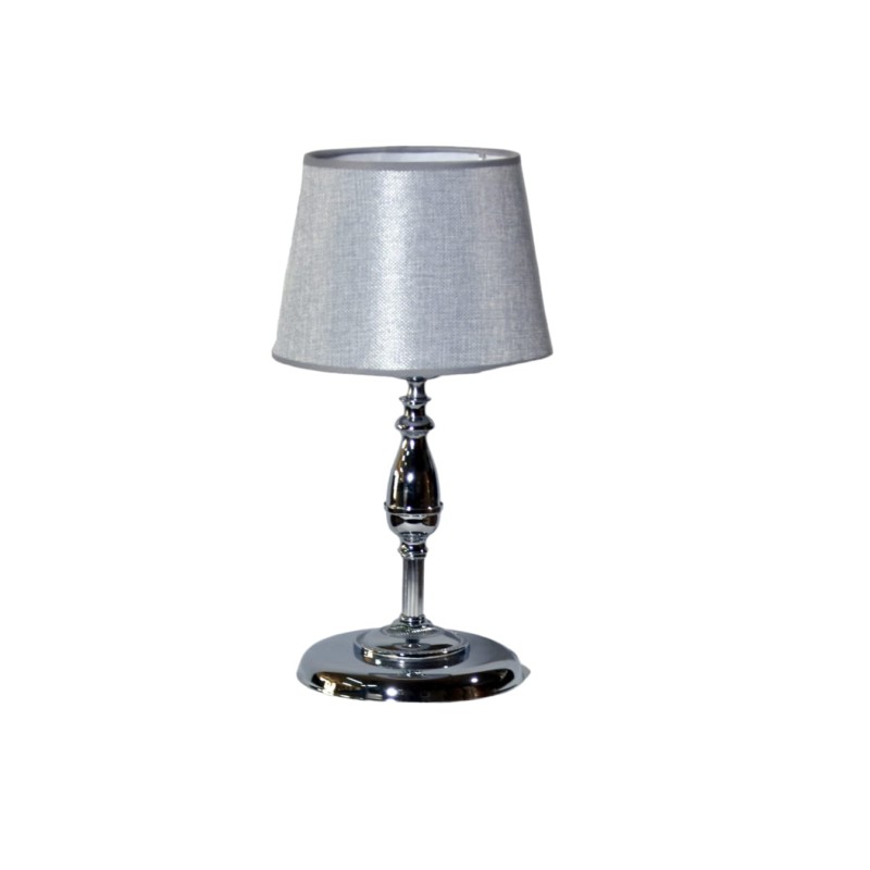 Πορτατίφ λαμπατέρ λάμπα επιτραπέζια ασημί inox μεταλλική Ε27 με ασημί καπέλο υφασμάτινο με επικάλυψη PVC Φ20x37εκ