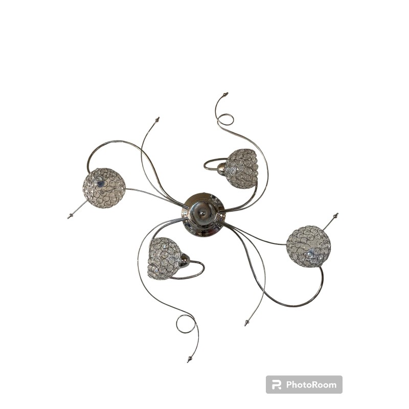 Φωτιστικό οροφής τετράφωτο χρωμίου Ε27 σε ροζέτα με διάσταση Μ36*Υ3εκ. και 4 μπάλες με κρυσταλλάκια διαστάσεων Φ20*Υ17εκ.