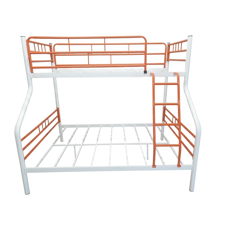 Ιδανικό για μεγάλες οικογένειες ,κατασκευασμένο από μέταλλο που το κάνει πολύ στιβαρό και σταθερό,η κουκέτα είναι κατασκευασμένη έτσι ώστε να μπορείτε να βάλετε συρόμενο μηχανισμό στο κάτω κρεβάτι ώστε να μπορείτε να κοιμίσετε και ένα άτομο παραπάνω,στην τιμή περιχέονται και τα κρεβατοσανιδα,διαθέτει και μεταλλική σκάλα ,επίσης διαθέτει στο πάνω κρεβάτι και προστατευτικό κάγκελο,η βαφή της είναι ηλεκτροστατική σε λευκό με πορτοκαλί χρώμα.