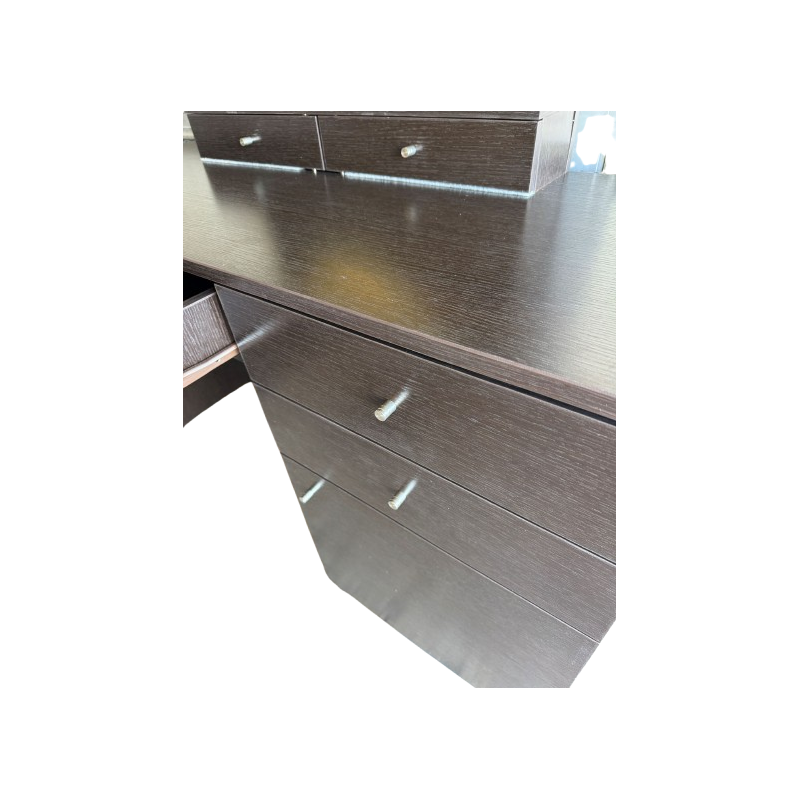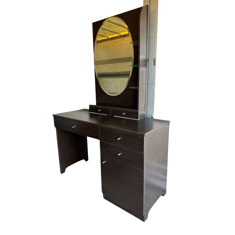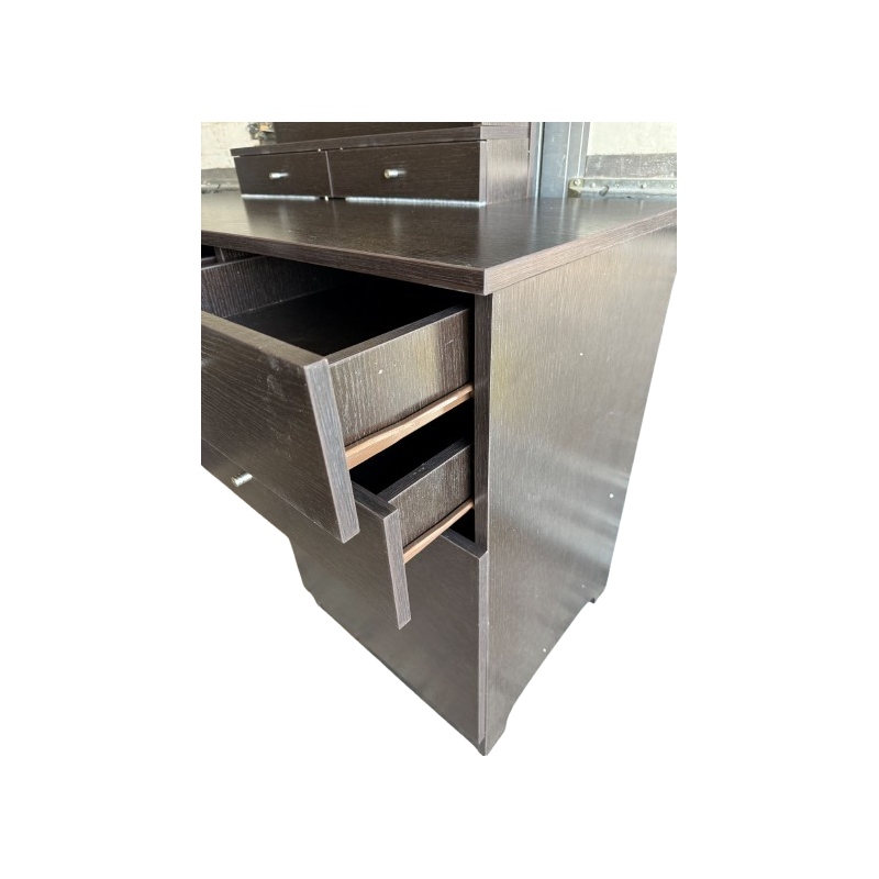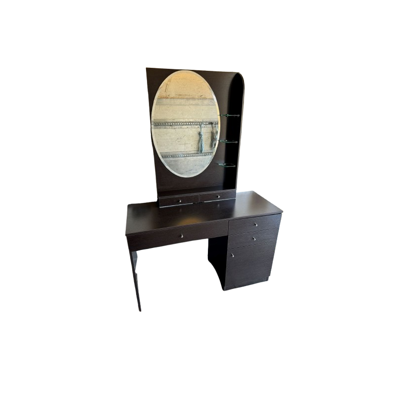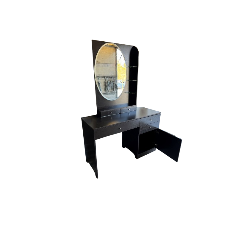 Τουαλέτα κρεβατοκάμαρας βεγγε με καθρέφτη μπιζουτε σχέδιο τρία συρτάρια ντουλάπι ράφια γυάλινα δυο χώρους για κοσμήματα από μοριοσανίδες