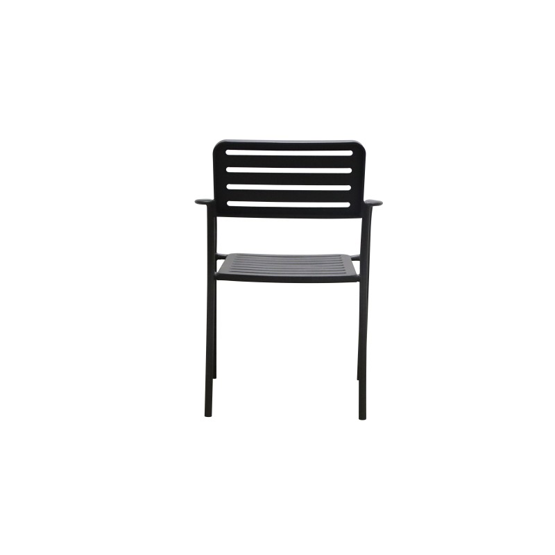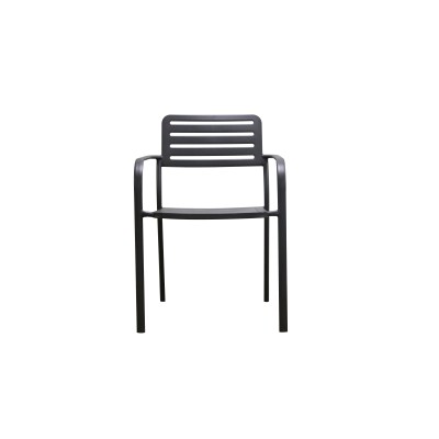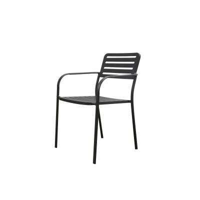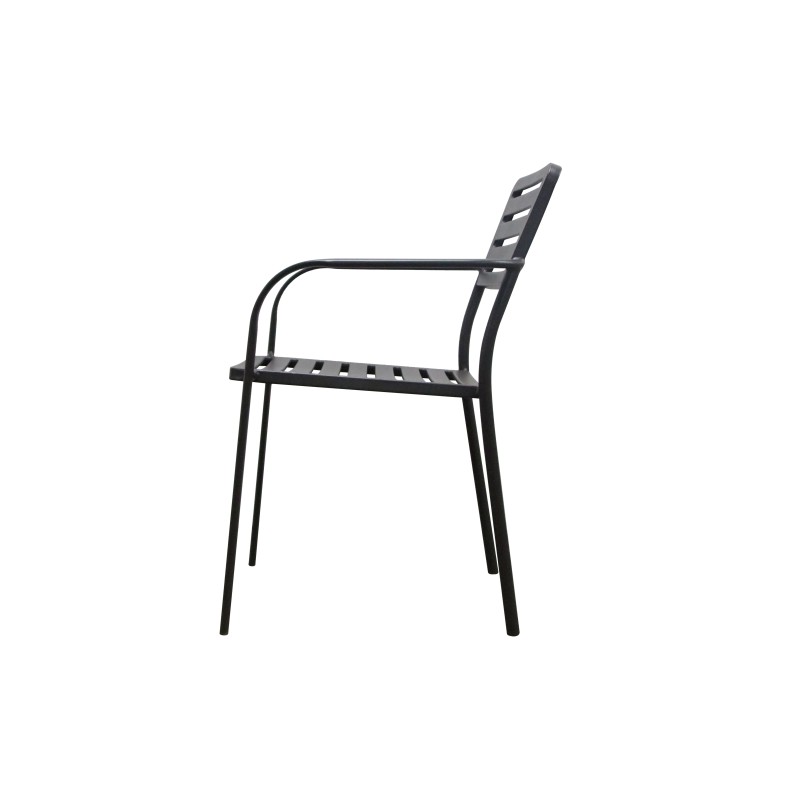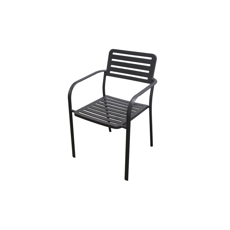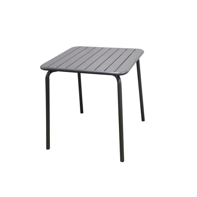 Σετ εξωτερικού χώρου με τραπέζι με ΓΚΡΙ μεταλλικό σκελετό με μεταλλική επιφάνεια και 4 μεταλλικές πολυθρόνες με κάθισμα από φέτες σε ΓΚΡΙ χρώμα.
