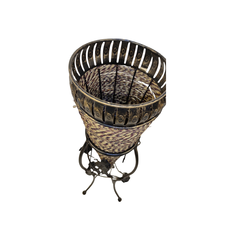Διακοσμητικό ανθοδοχείο κηροπήγιο ομπρελοθήκη επιδαπεδιο χειροποίητο από μεταλλικό σκελετό με φύλα με αποσπομενη βάση μπρονζε χρώμα Φ17x74εκ
