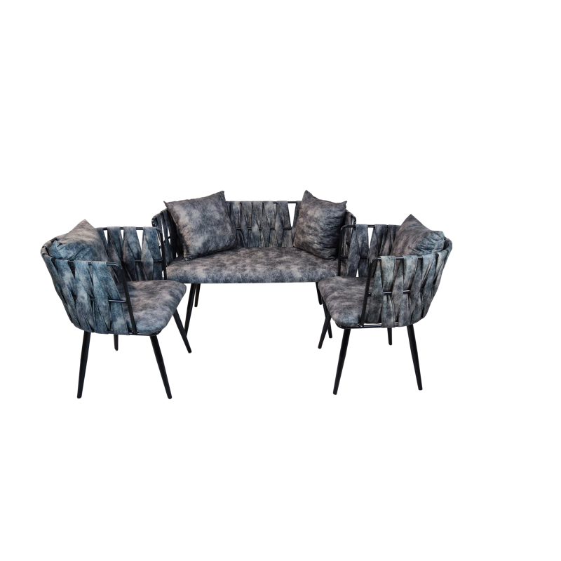 Σαλόνι υποδοχής σετ τριών τεμαχίων από μεταλλικό σκελετό πλεγμένο από αλέκιαστο ύφασμα γκρι χρώματος 118x60x83