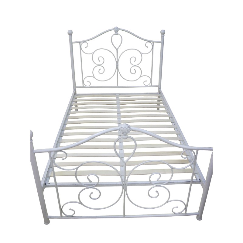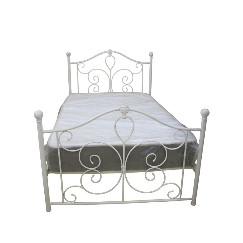 Κρεβάτι μεταλλικό λευκό διπλό με στρώμα 150x200 πατινα βαφή πεπαλαιωμένη με ανατομικό σομιε ψηλό προσκέφαλο και ποδαρικό 155x210x110