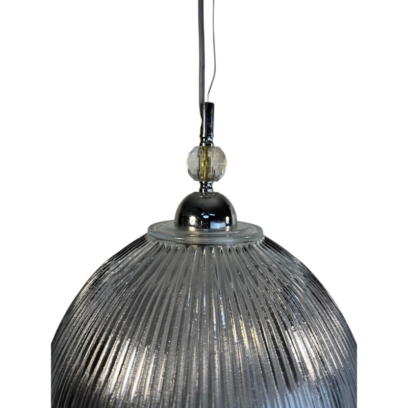 Φωτιστικό κρεμαστό μονοφωτο STRAIPS γυάλινο με σχέδιο και ντιζα E27 με κρύσταλλο INOX Φ30x25εκ μεχρι ύψος 1μ