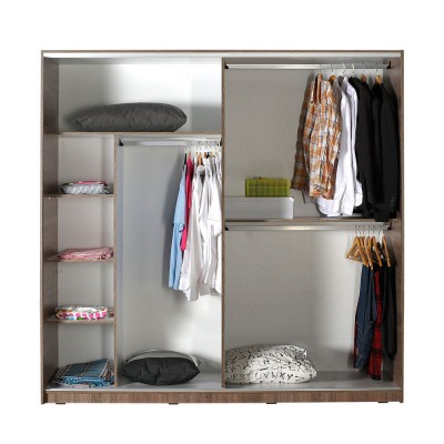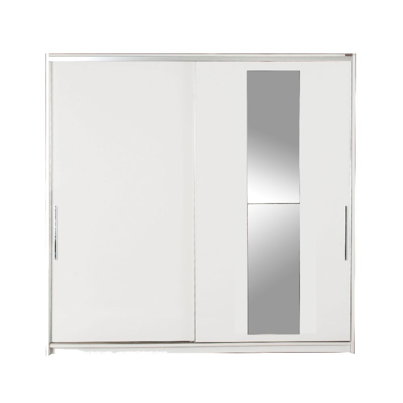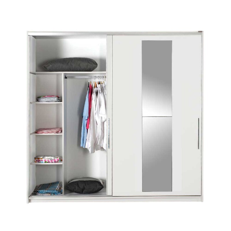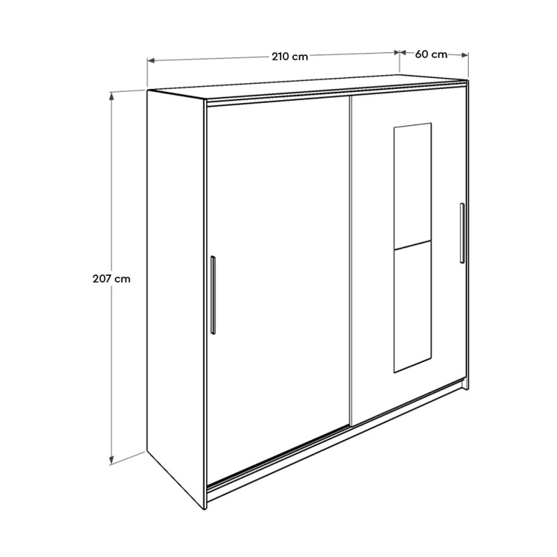Ντουλάπα συρόμενη λευκή με καθρέπτη 210x60x210εκ SWD-720-BY από μελαμίνη με κρεμάστρες ράφια και εσωτερικό πατάρι