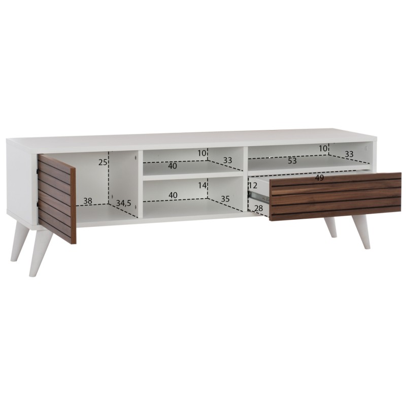 Έπιπλο τηλεόρασης tv ψηλό σταχτί φυσικό με πόδια συρτάρι ντουλάπι και χώρους από μοριοσανίδες TVR-511-TT-1 150x40x53εκ