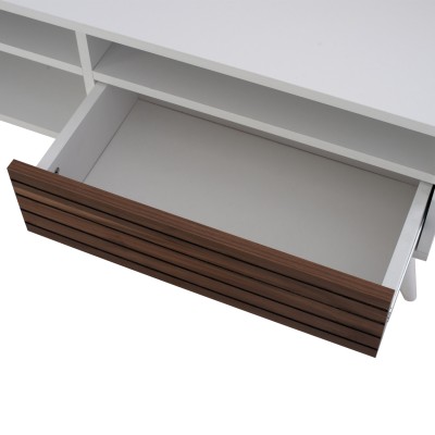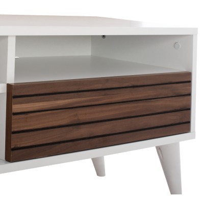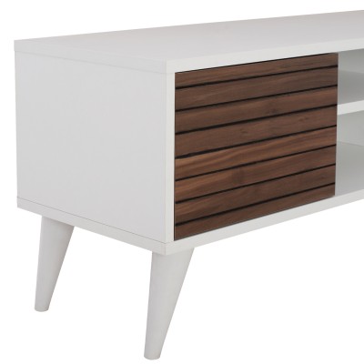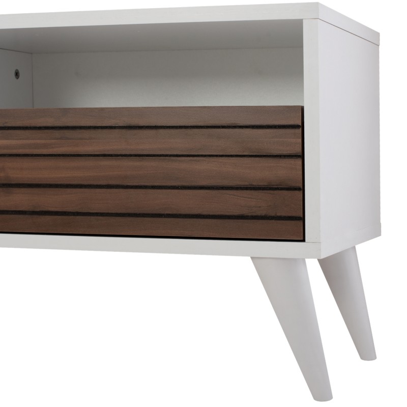 Έπιπλο τηλεόρασης από μελαμίνη σε βέγκε χρώμα με συρτάρι και ντουλάπι και ασημί χερούλια και βοηθητικό χώρο 80*45*45εκ.